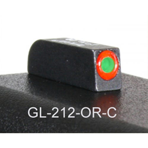 US made bar steel sights. ProGlo front green Tritium with orange outline is paired with an all black rear sight.