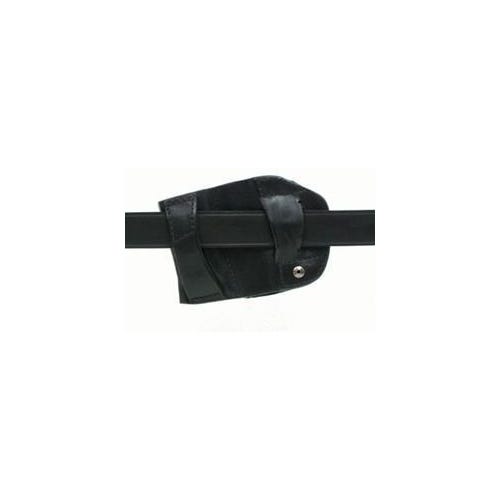 Flex-design hugs waistline. Molded detent helps keep magazine in place. Dual front belt loop allows multiple carry modes. Adjustable tension screws. Open bottom accommodates different slide lengths. Cut allows full combat grip. Made in USA Black. LH.