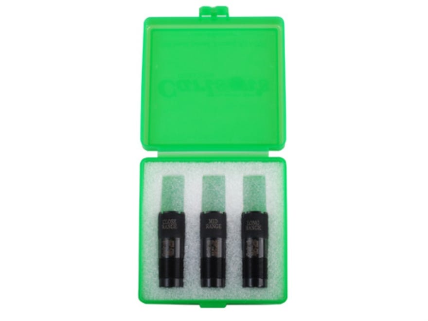 Carlson’s has designed this package of choke tubes to fulfill all of the needs of the serious waterfowl hunter. This set has a choke for everything from up close and personal to long range pass shooting and everything in between. These chokes are manufactured from 1704 stainless steel and designed to throw tighter and denser patterns than conventional choke tubes. Each choke is has the constriction and size laser marked on the end and body for reference. Steel shot may be used through these choke tubes with exceptional results. Do not shoot steel shot larger than BBB or any steel load faster than 1500 fps through the Full or Extra Full Constrictions.