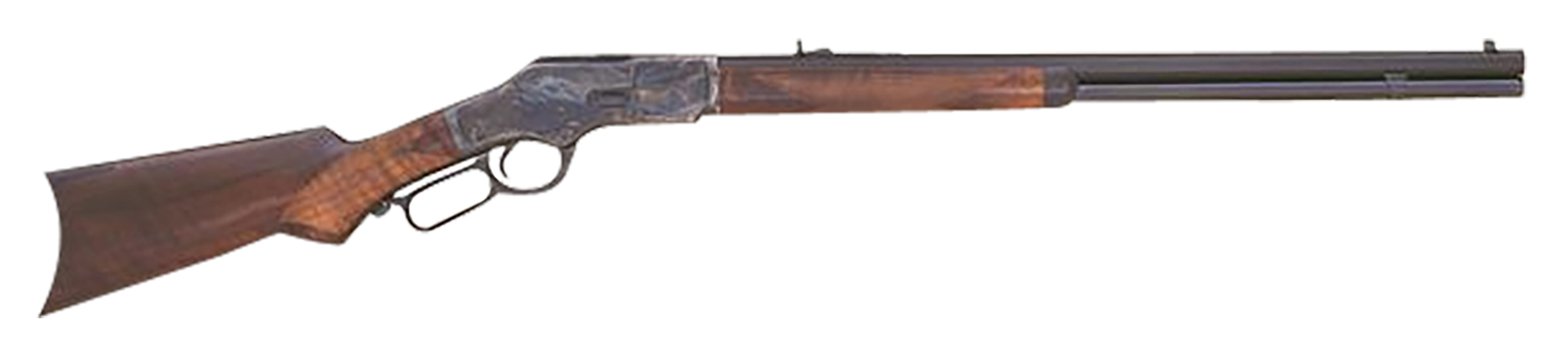 The 1873 Deluxe model brings the old world into the new with its case-hardened steel receiver that provides a unique finish, making each rifle a one-of-a-kind piece in terms of appearance. The blued finish of the barrel pairs beautifully with the color case hardened receiver, offering a contrast that enhances the overall look of this classic firearm.
