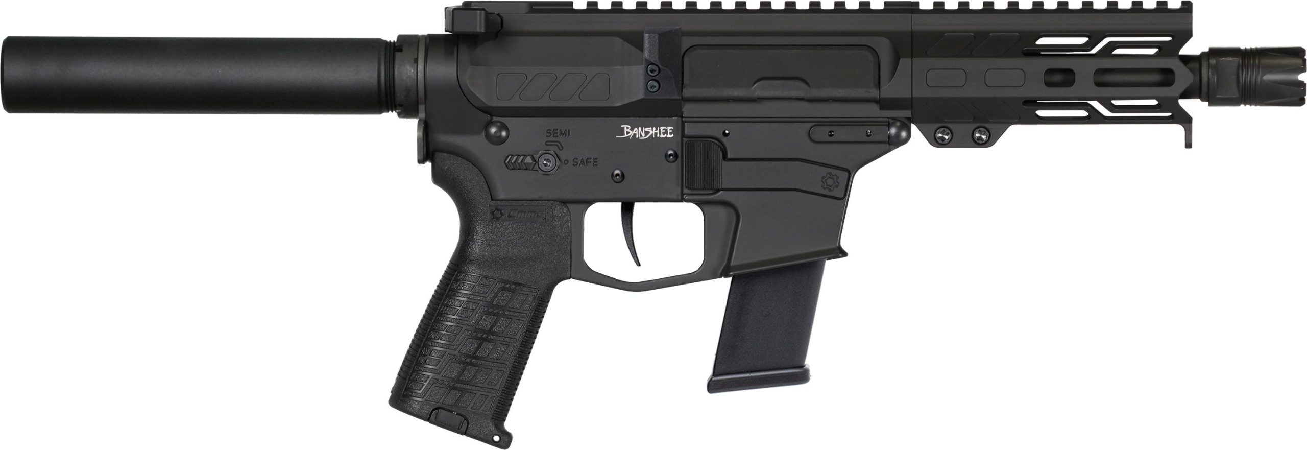 This tactical pistol features a Picatinny rail on the receiver for easy attachment of optics and accessories. The EML 4″ M-LOK handguards, along with the CMMG Zeroed grips, offer a comfortable and secure handling experience. Despite its solid construction, the Banshee MKG is lightweight at 4.40 lbs, making it easy to maneuver in various tactical situations. The pistol’s stock, finished in Black, complements the overall design while enhancing durability.