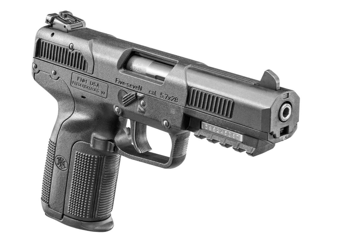 The original FN Five-seveN, often imitated but hardly duplicated, has two decades of trusted service with allied armies, global law enforcement and civilians. With improved range and accuracy over common pistol cartridges, the NATO standardized 5.7x28mm developed by FN Herstal is fired from the chrome-lined cold hammer-forged barrel. Pinpoint accuracy and minimal felt recoil is standard issue. The Five-seveN 5.7×28 is equipped with an internal hammer, the smooth trigger with a predictable break further enhances accuracy. The FN Five-SeveN is an excellent choice for anyone looking to purchase a quality hand gun. Find your gun, ammo, and accessories for sale at GrabAGun today!