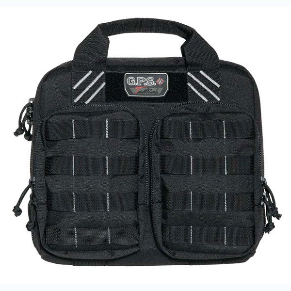 •Features a double quilted inside storage area that measures 11″ tall & 12.5″ wide for double handgun storage on each side •MOLLE webbing system for adding accessories •Twin front ammo pockets •Visual I.D. storage for shoooting glasses & ear plugs •YKK locking zipper on main compartment for legal transport •Hook & loop area for name or club placard