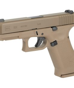 The Glock 19X combines the best features of two of its most popular and most trusted field-tested platforms. It features Glock’s Safe Action system which provides a consistent trigger pull from the first to the last round. The three automatic independently operating mechanical safeties are built into the fire control system of the pistol. All three safeties disengage sequentially as the trigger is pulled and automatically reengage when the trigger is released. The frame is made of polymer with hardened steel guides. It features an ideal grip angle and low weight. The slide stop lever and the magazine catch are easily operated with the shooting hand. The advanced surface treatment of the slide results in optimal hardness by considerably reducing wear and tear and it makes it corrosion resistant, even when operating in saltwater conditions. The matte surface minimizes light reflection. The barrel is mechanically locked and cold-hammer forged. It also has the same advanced surface treatment as the slide. Its extractor serves as a loaded chamber indicator to comply with the laws of certain states and its position may visually and physically indicate whether there is a cartridge in the chamber of the pistol.