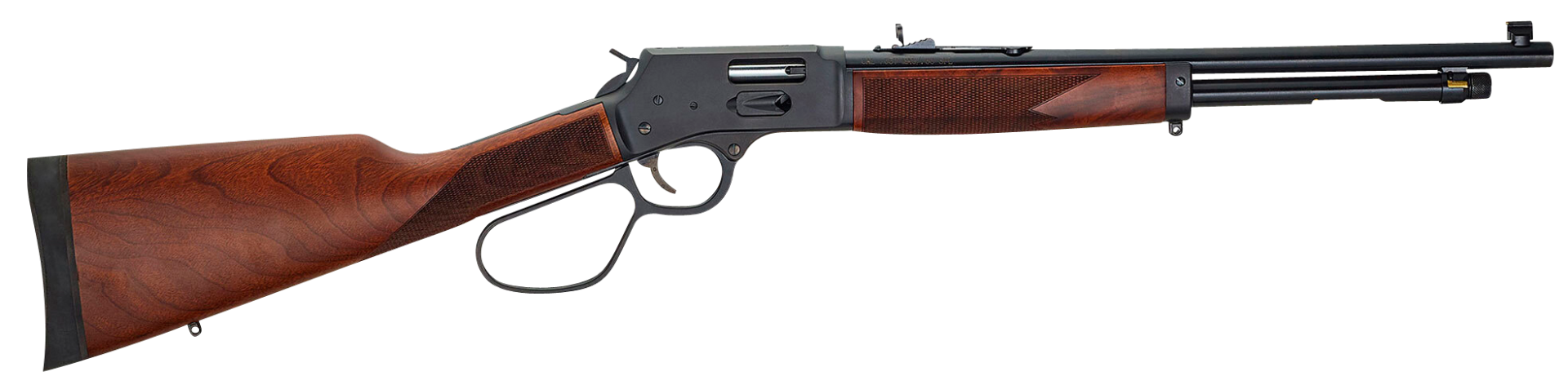 The Henry Big Boy Side Gate Lever Action offers up the best of both worlds with our standard removable tube magazine for safe and easy unloading and a side loading gate to keep the magazine topped off. The American walnut furniture is set off by intricate, deep checkering that will ensure a firm purchase on the stocks. A semi-buckhorn rear and brass bead front sight accompanies a 20″ round blued steel barrel to deliver the accuracy you’ve come to expect from a Henry.