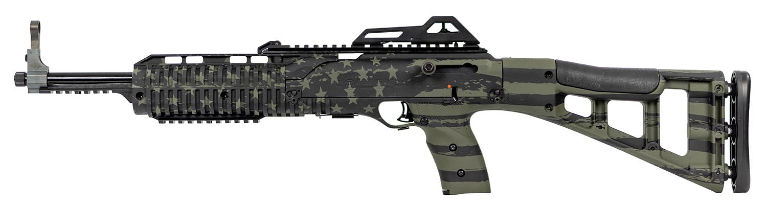 Hi-Point produces affordable, American-made firearms featuring 100% American parts and assembly. Hi-Point carbines are +P rated and accept all factory ammunition. This model features an ODG American Flag finish on the stock with black metal finish and includes a 10-round magazine. (The mag will not work with the C9 model)