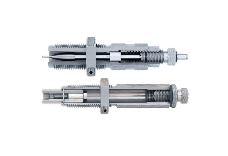 Full-length die set includes full-length size die, seating die and expander assembly.