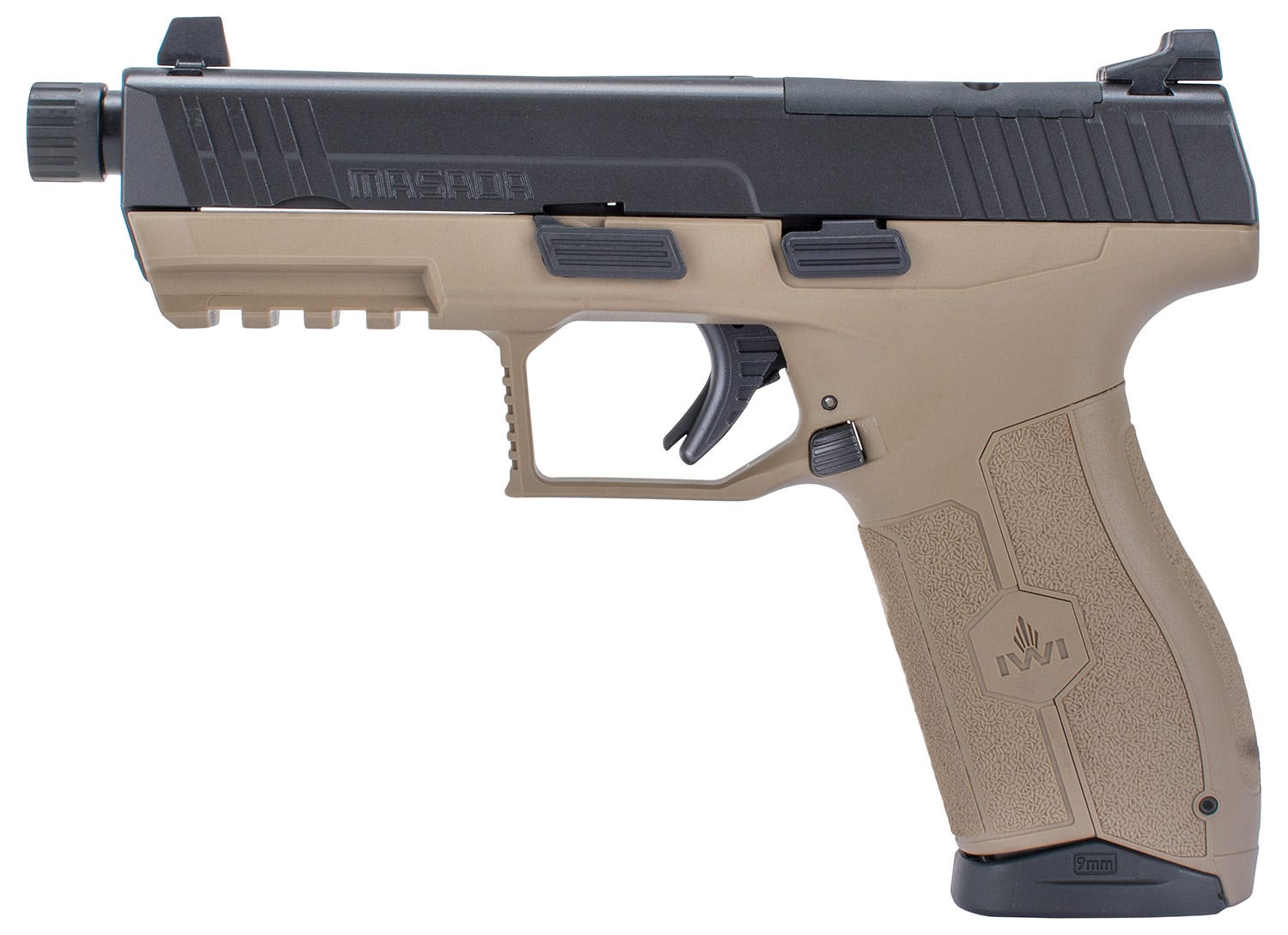 The IWI MASADA polymer framed striker-fired pistol was developed in order to provide an advanced solution to the modern battlefield requirements. It features a low profile barrel for reduced perceived recoil. Fully ambidextrous controls and enhanced ergonomics which provide a natural and instinctive pointing grip angle. Three interchangeable wrap around back-straps coupled with the deep beavertail enabling the MASADA pistol to fit a wide variety of hand sizes. MASADA utilizes a modular serialized high grade steel trigger mechanism housing that can be easily removed, allowing simple and easy disassembly and maintenance.