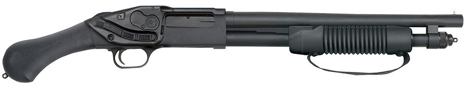 The Mossberg 590 Shockwave includes all the features that have made Mossberg pump-actions the choice for millions worldwide: ambidextrous safety, dual extractors, positive steel-to-steel lockup, twin action bars, and a smooth operating anti-jam elevator. It has a convenient clean-out tube magazine cap, a front bead sight, and ‘corn cob’ strapped forend to keep shooter’s lead hand clear of the muzzle. The Mossberg 590 Shockwave Raptor bird’s head pistol grip is uniquely shaped to minimize felt recoil. Classified as fully-compliant by the BATFE, this model has a 26.37″ OAL and requires no Tax Stamp for transfers. This model features a Crimson Trace Laser Saddle.