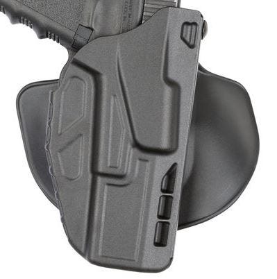 The Safariland Model 7378 7TS Holster combines the security of ALS with the speed and simplicity of an open-top design. ALS secures your weapon automatically as it is holstered, yet still allows a fast, natural draw with the swipe of the thumb release as you acquire your shooting grip. Built from durable, weather- and temperature-resistant SafariSeven non-marking nylon blend, the Model 7378 7TS will not scratch or mar the finish of your firearm, and its raised interior stand-offs allow dirt and moisture to clear quickly.